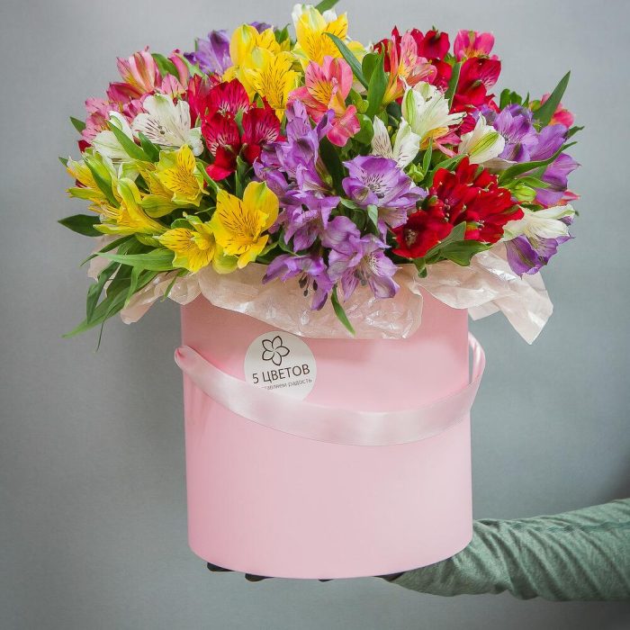 Букет из 19 альстромерий микс в шляпной коробке