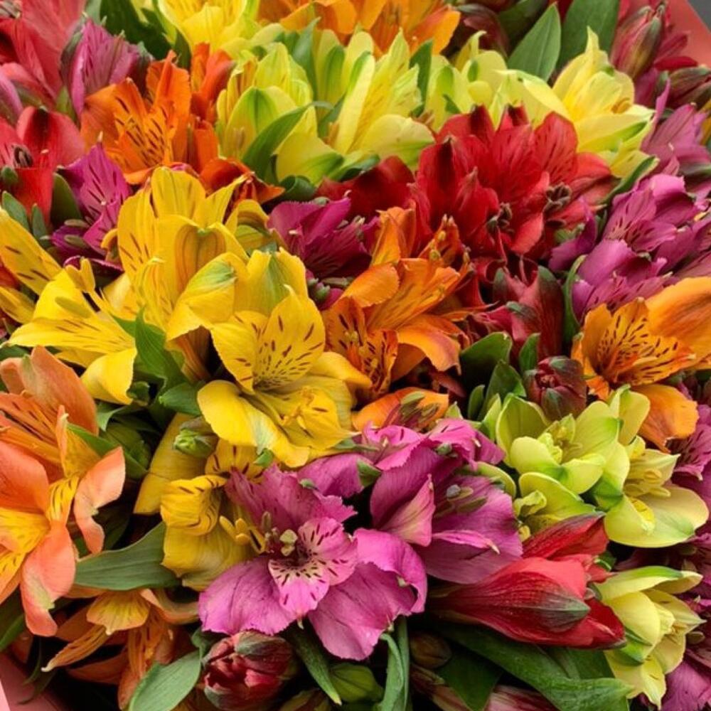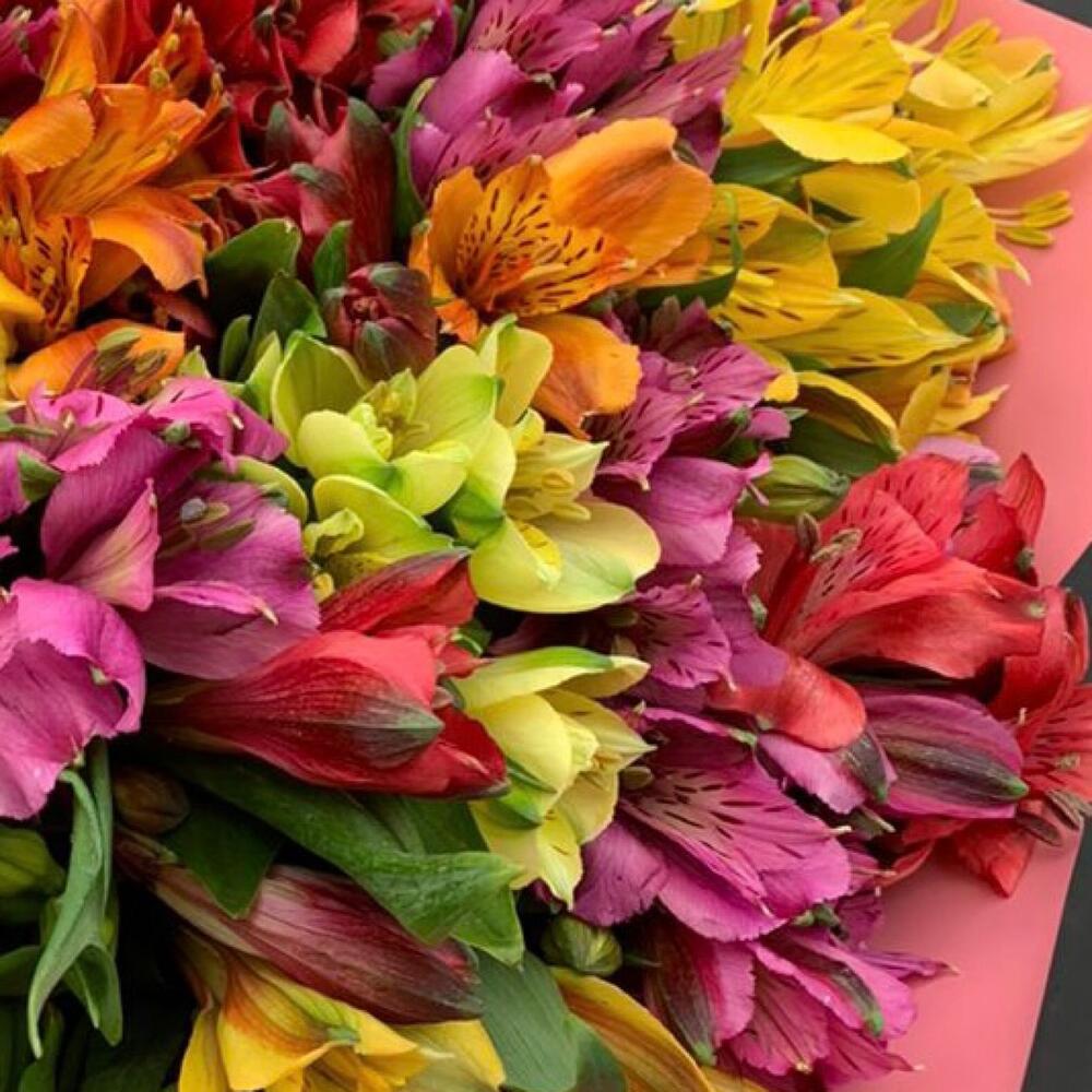 Альстромерия – 35 шт.Лента атласная – 1 шт.Упаковка дизайнерская – 1 шт.