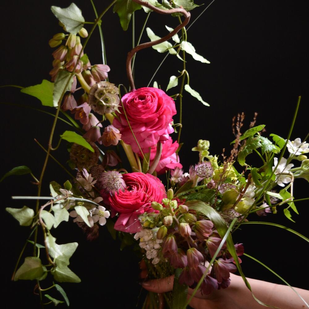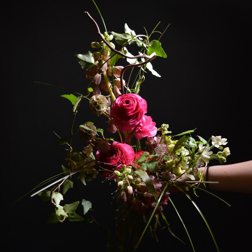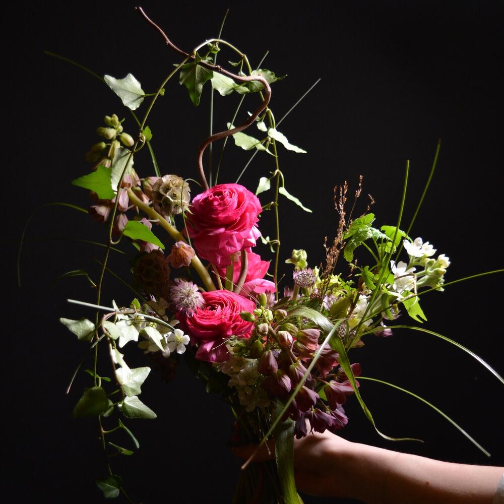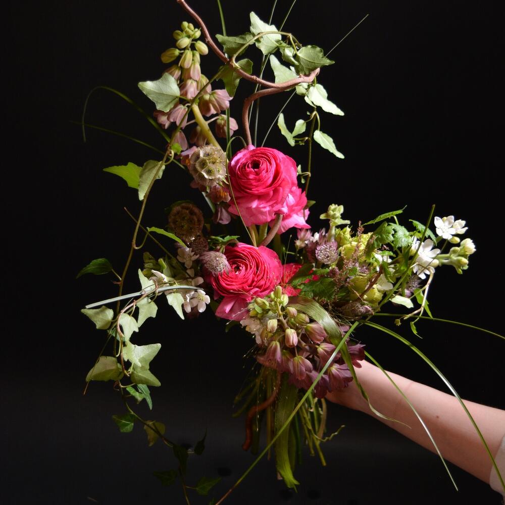 Паникум – 2 шт.Скабиоза – 2 шт.Хедера – 1 шт.Берграсс – 2 шт.Ранункулюс – 4 шт.Корилус – 1 шт.Оксипеталум – 3 шт.Злаки – 3 шт.Астранция – 3 шт.Фритиллярия – 2 шт.малина зелень – 2 шт.