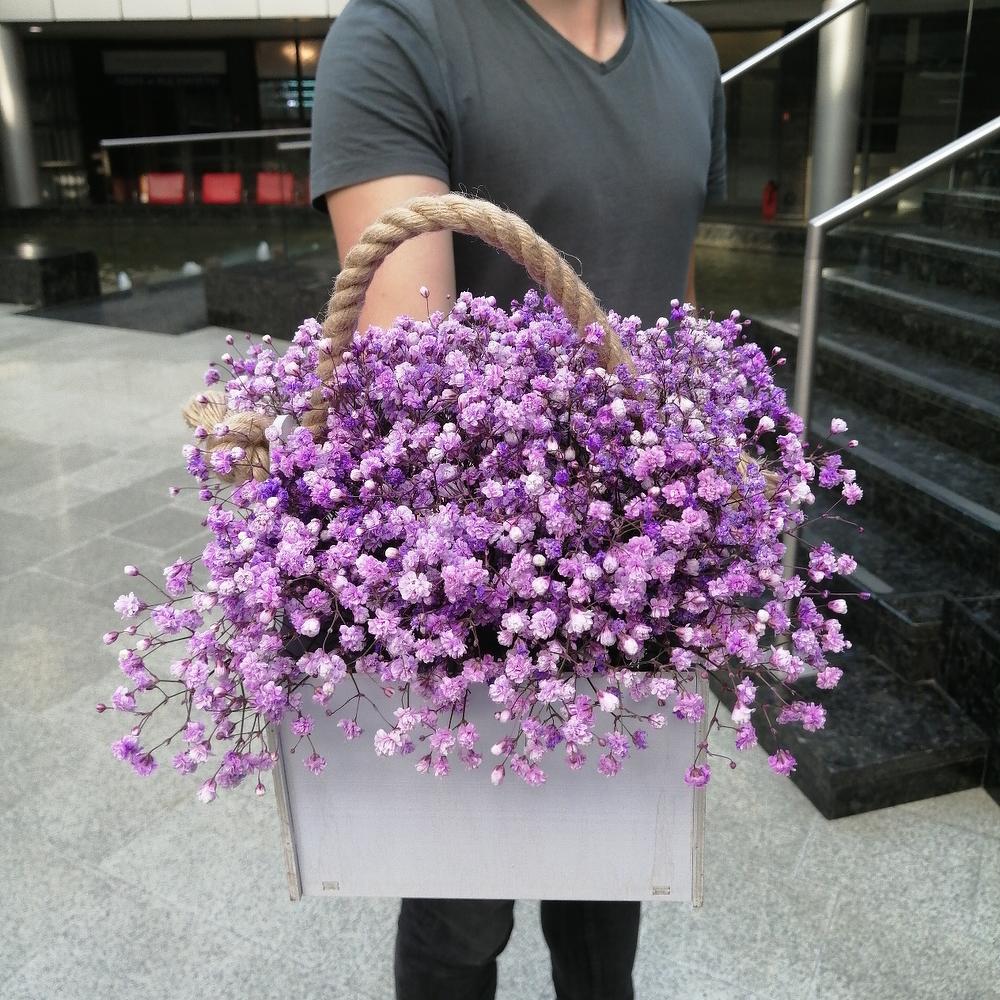 Гипсофила Мирабелла 95 г – 15 шт.Ящик деревянный – 1 шт.Оазис флористический – 1 шт.