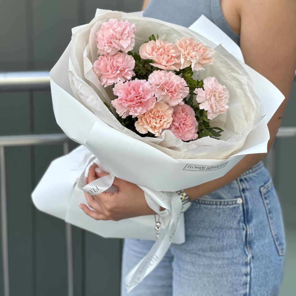 Гвоздика сортовая – 9 шт. Писташ – 2 шт. Оформление – 1 шт.