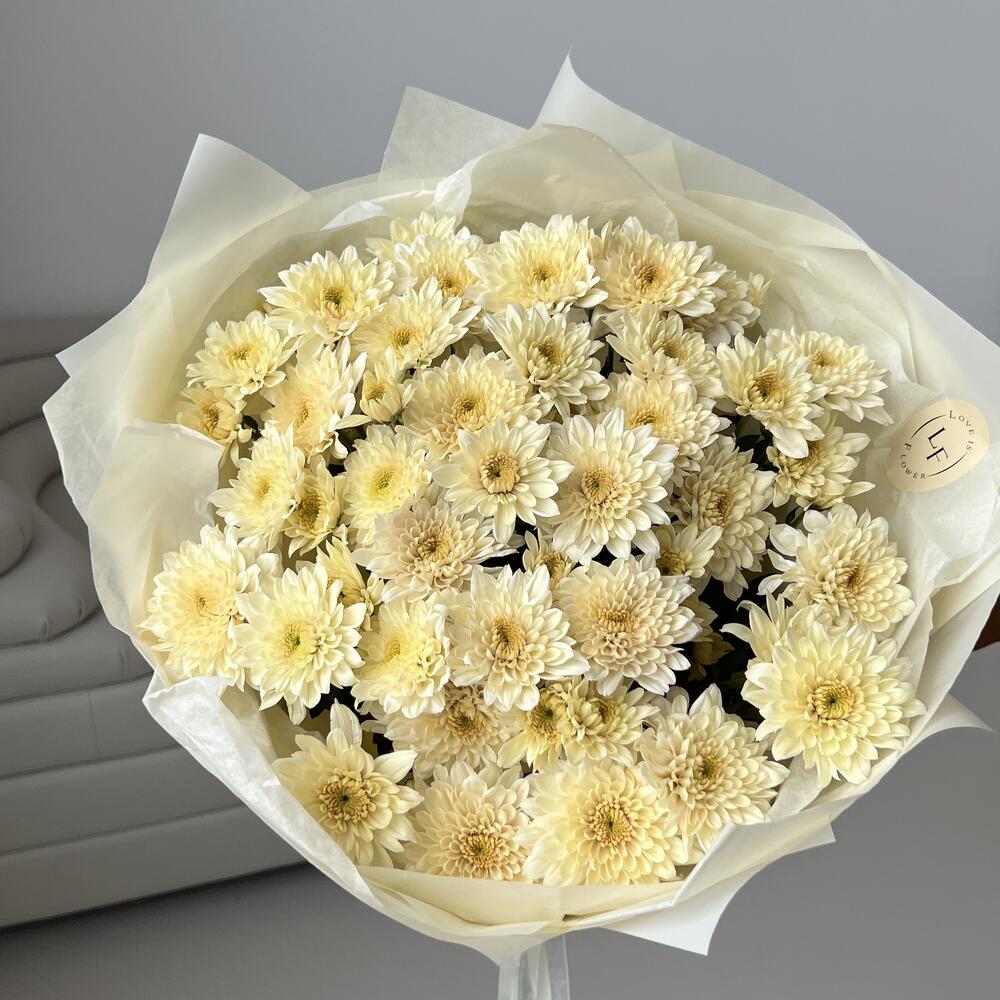 Пленка матовая – 1 шт.тишью хрустящая – 1 шт.хризантем кустовая sorbet с легким медовым ароматом – 9 шт.открыточка брендированная в подарок – 1 шт.