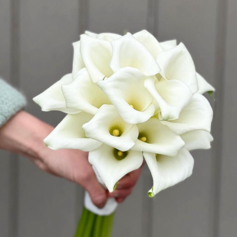 Калла белая – 19 шт.Лента атласная – 2 шт.Открыточка с вашими пожеланиями – 1 шт.хорошее настроение – 100 шт.инструкция по уходу за цветами – 1 шт.коробка переноска – 1 шт.Кризал – 1 шт.