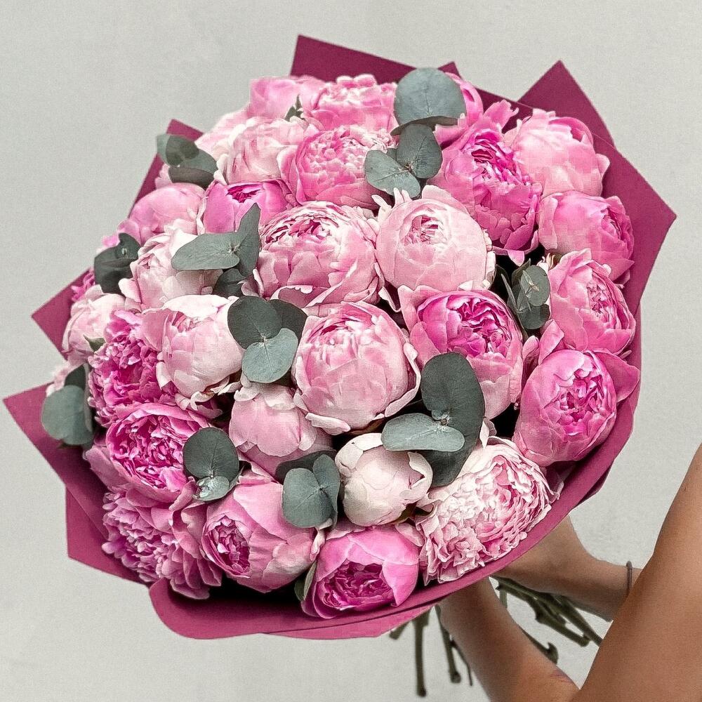 Пион Сара Бернар – 31 шт.эвкалипт синерея – 2 шт.