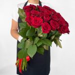 Эффектный букет из 45 роз будет уместен на подарок роскошной женщине. Также таким букетом можно признаться в своих самых искренних чувствах.
