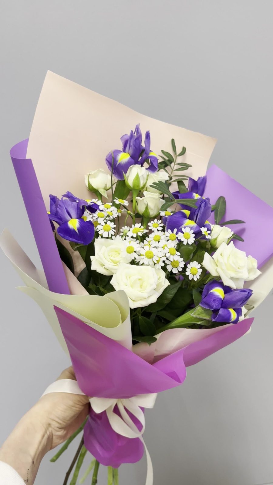 Авторский букет «Ирисы и ромашки»