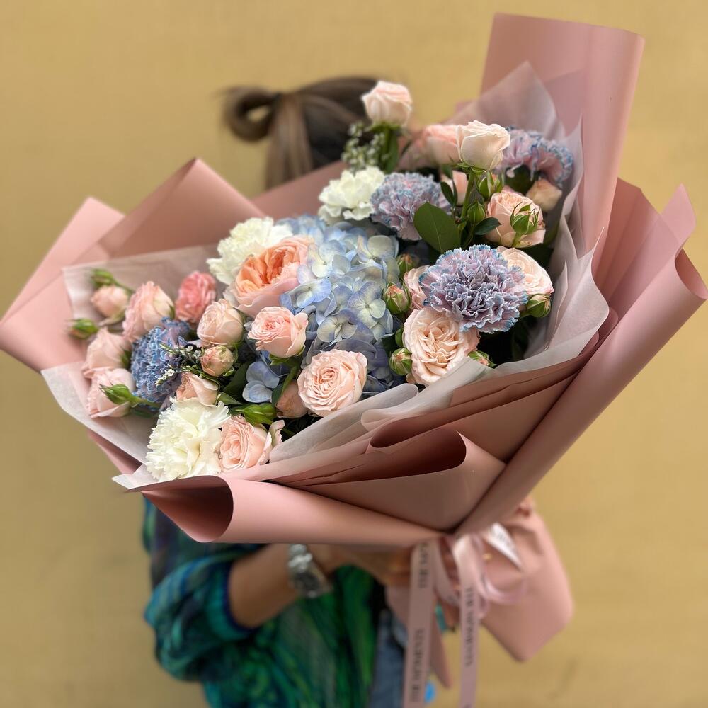 Гортензии, Кустовые розы, Лизиантусы, Пионовидные розы, Розы