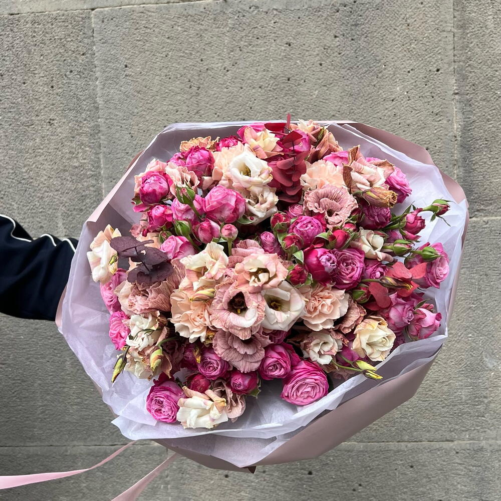 Гвоздики, Лизиантусы, Розы, Тюльпаны
