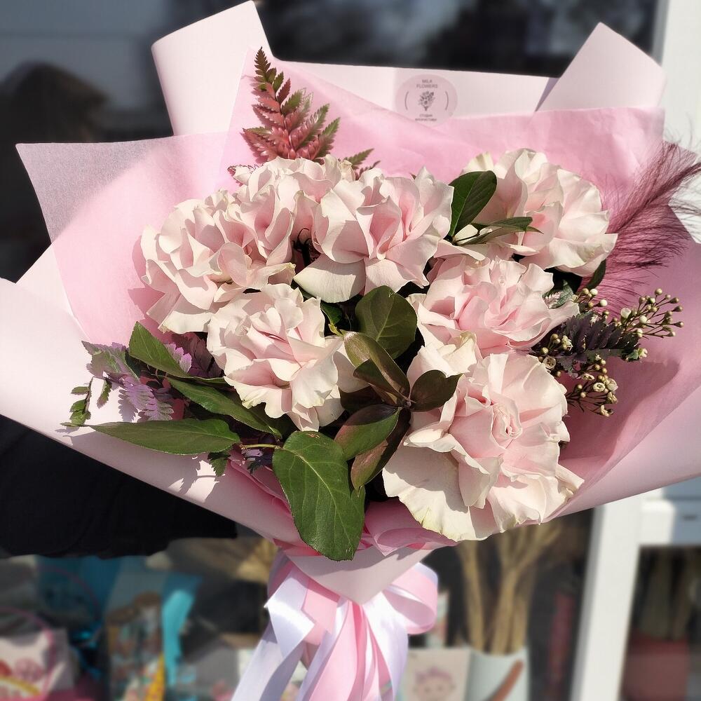 Гвоздики, Кустовые розы, Лизиантусы, Пионовидные розы, Розы