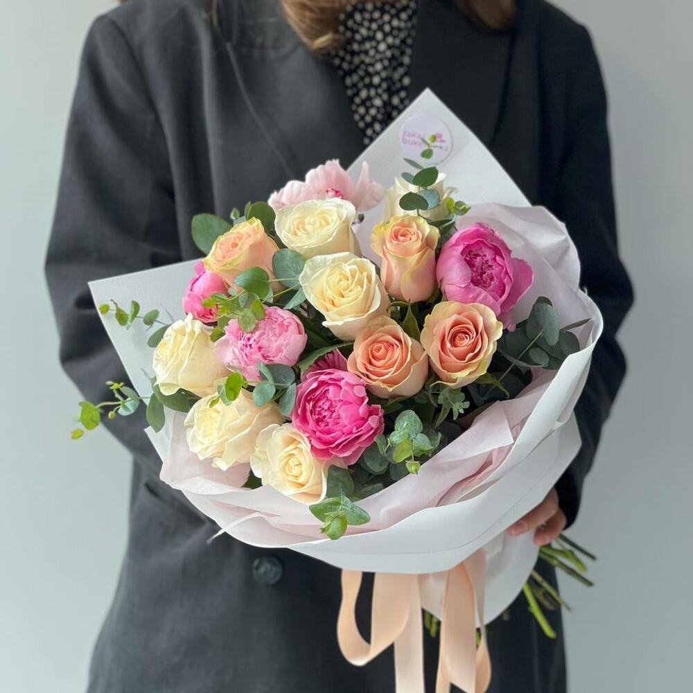 Кустовые розы, Лизиантусы, Пионы, Розы