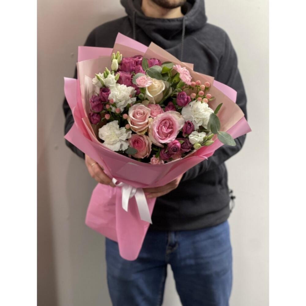 Гвоздики, Пионовидные розы, Розы