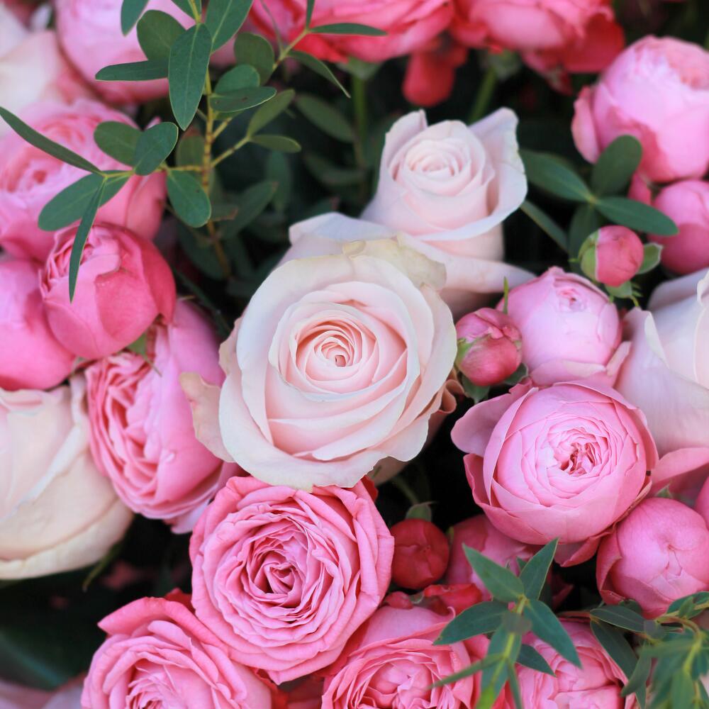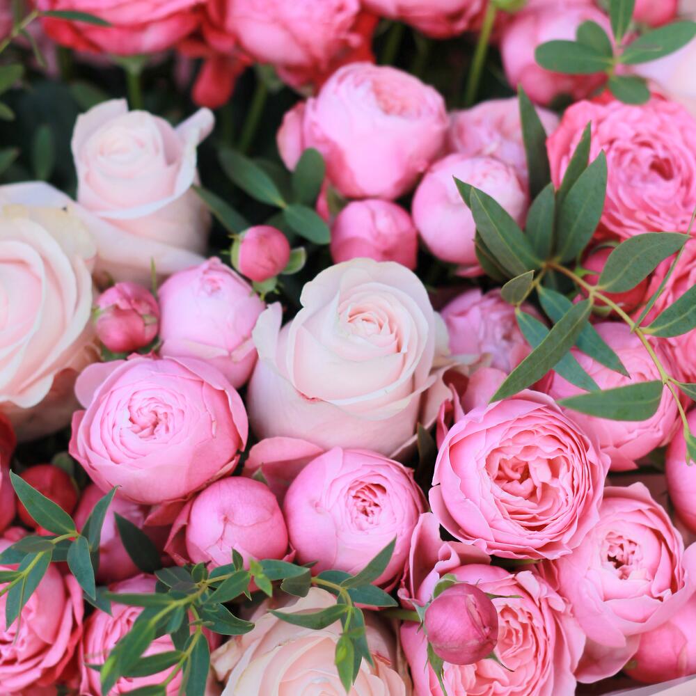 “Эвкалиптическая роскошь” гортензия и пионовидная кустовая роза