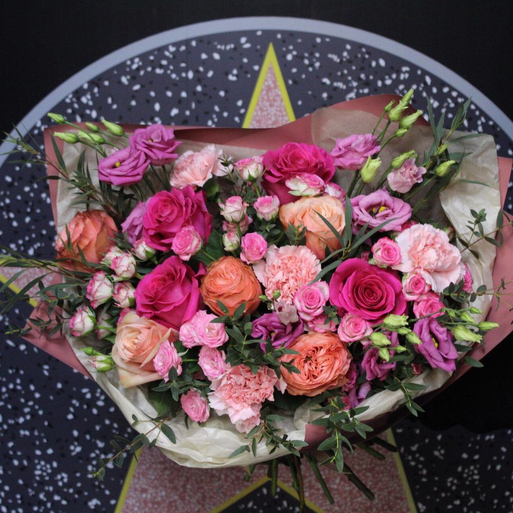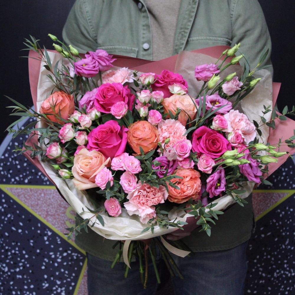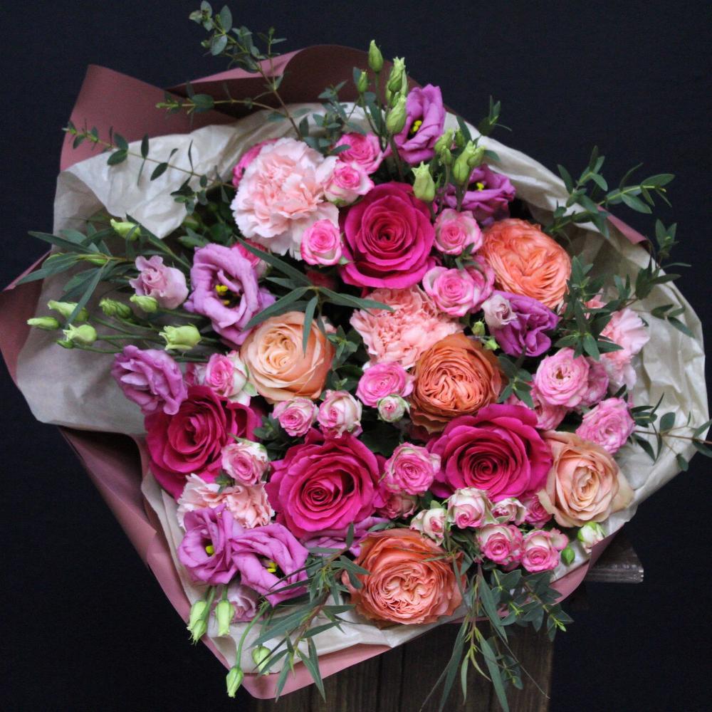 Категорий: Гвоздики, Кустовые розы, Лизиантусы, Пионовидные розы, Розы