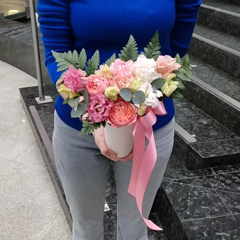 Цветочная композиция, что прекрасно подойдет для комплимента или небольшого подарка (При заказе просьба обратить внимание на размеры товара)
