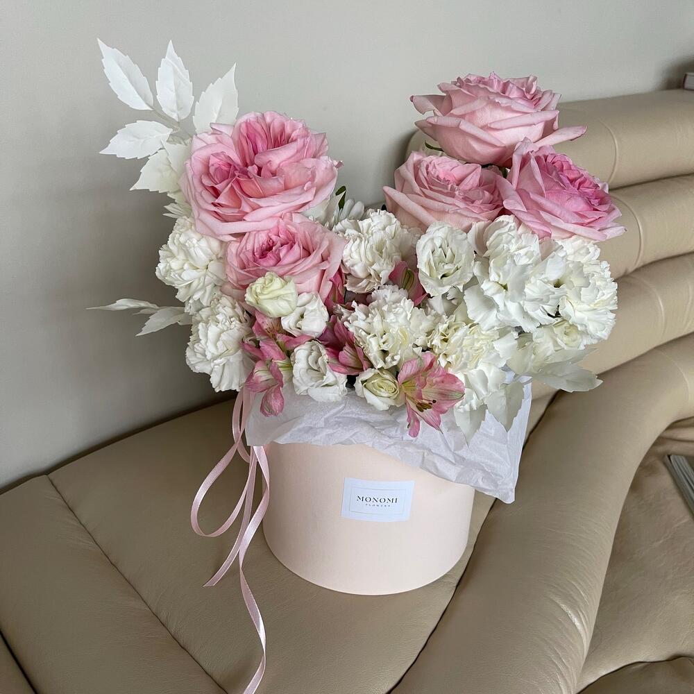 “В твоих глазах”: нежная шляпная коробка с французскими розами