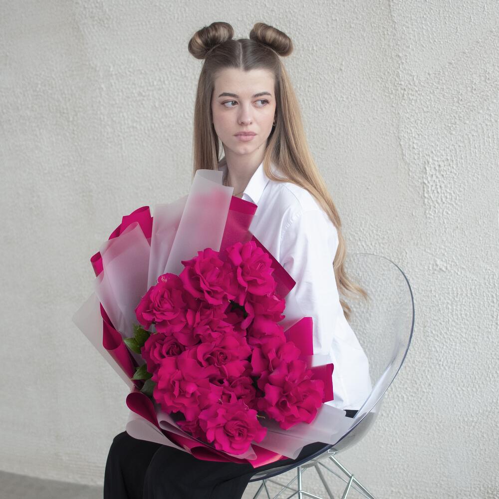 Роскошный монобукет из французских роз в стильной упаковке