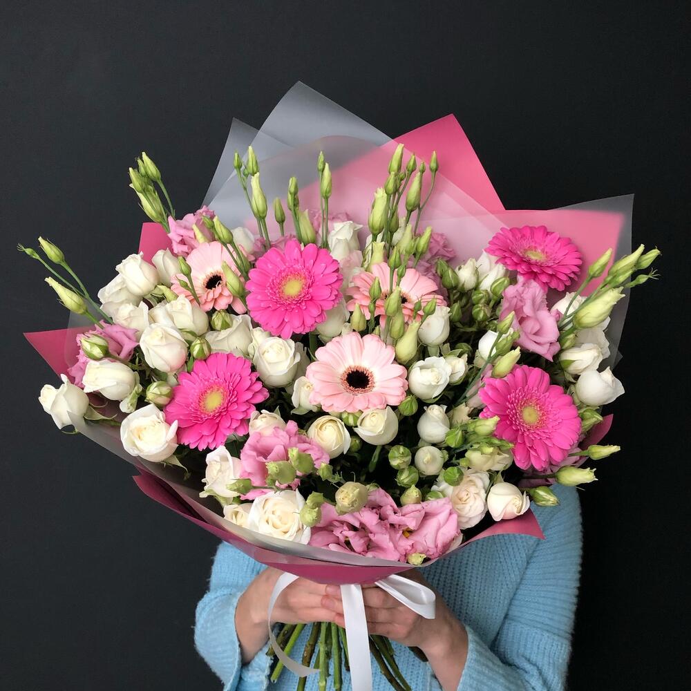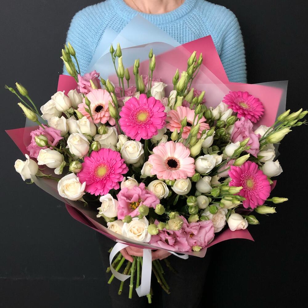 Категории: Герберы, Лизиантусы, Розы