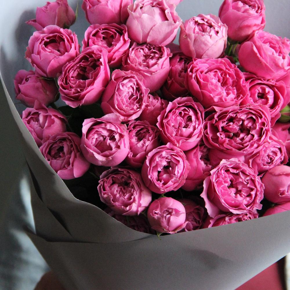 Роза пионовидная кустовая – 7 шт.Упаковка – 2 шт.Лента атласная – 2 шт.