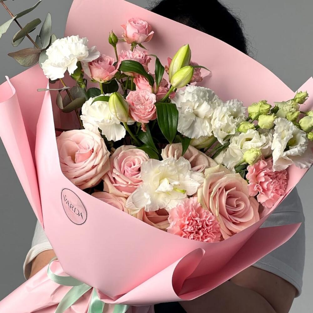 Альстромерии, Кустовые розы, Лизиантусы, Пионовидные розы, Розы, Ромашки