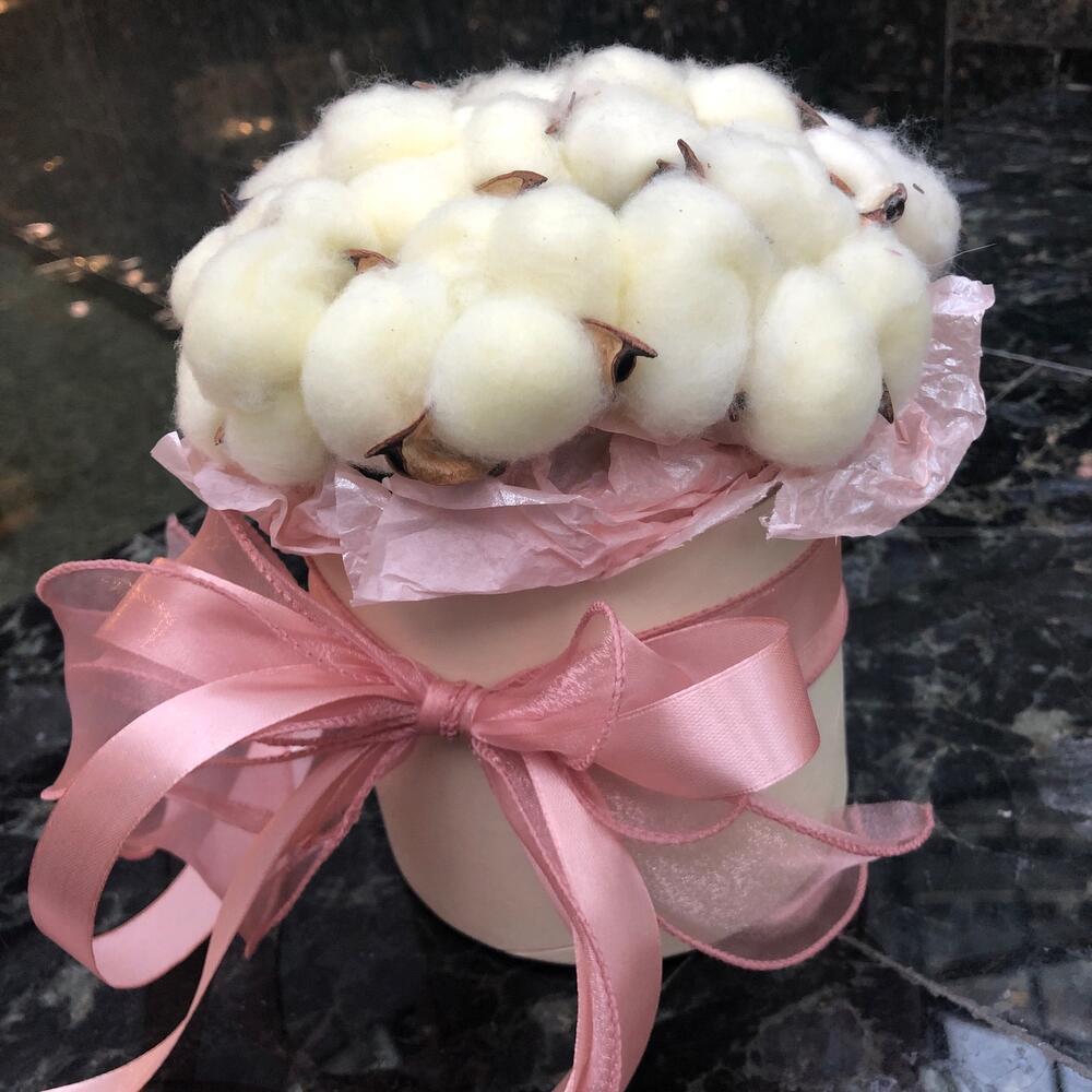 “Атлас☁️” – цветочная композиция с зефиром в деревянном ящике
