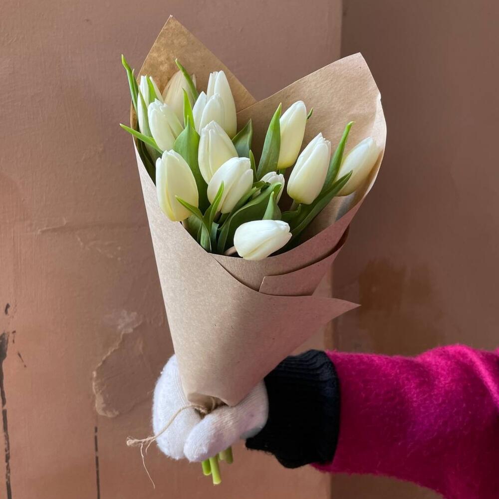 Крафтовая упаковка – 1 шт.Тюльпан белый – 13 шт.