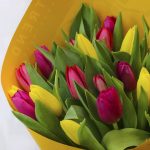 тюльпаны стандартные – 25 шт.Пленка – 1 шт.Лента – 1 шт.
